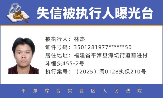 平潭法院曝光最新14名失信被执行人名单!姓名、地址、头像全曝光!